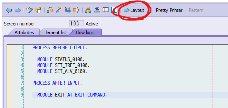 위에 올려보면 PBO에 선언한 SET_TREE_0100 모듈에