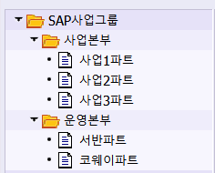 요걸 보면 이해가 빠를까.. SAP사업그룹의 자식노드는 사업본부와 운영본부다